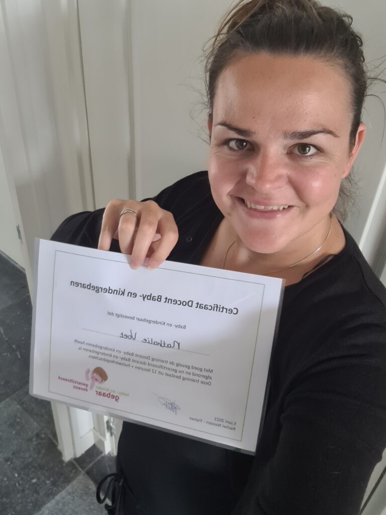 Op 5 juli de 2de training gehad waarbij ik mijn presentatie mocht laten zien.  Aan het einde van de dag hoorde ik dat ik was geslaagd en mijzelf nu baby–, kindergebaar docent mag noemen.