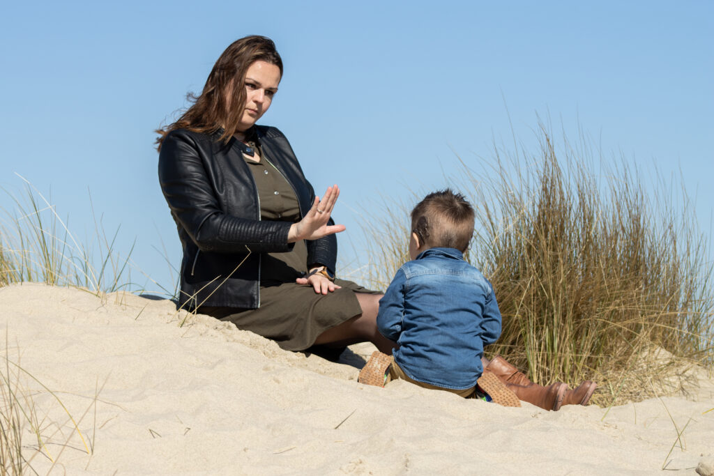 In het begin vond ik het heel vreemd en soms ook eng om te gebaren, maar naarmate ik steeds meer woorden kende en ik er ook zeker van was dat ik het gebaar goed deed durfde ik het steeds meer in te zetten. Thuis vond ik gebaren prima, maar op straat en in de winkel vond ik het zo eng. Al die ogen die op je gericht zijn als je door de winkel loopt als je communiceert met je kind met gebaren.