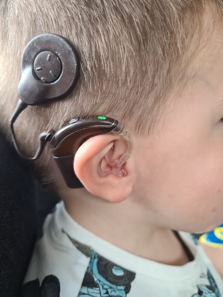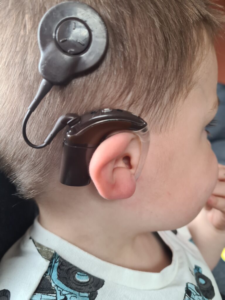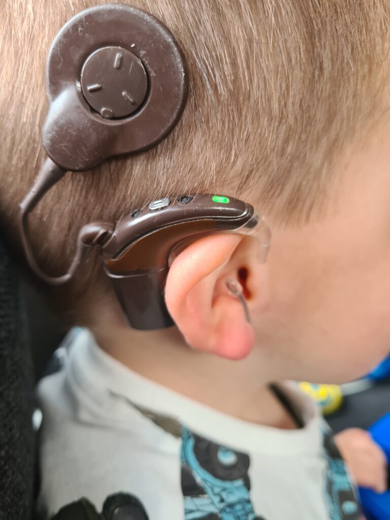 Wel kwam ik erachter dat andere ouders zijn begonnen met de koalaclips. De CI’s worden dan bevestigd aan de kleding met een speciale clip. Het draadje van de CI naar de spoel is dan veel langer waardoor je nog niets bij het oor hebt. Dit is tegen ons nooit gezegd en ook nooit een keuze geweest, of wij daar nu voor gekozen zouden hebben weet ik niet. Finn zijn haarbandje was ook wel zijn kenmerk. Mensen kijken toch sneller en konden er dan rekening mee houden.