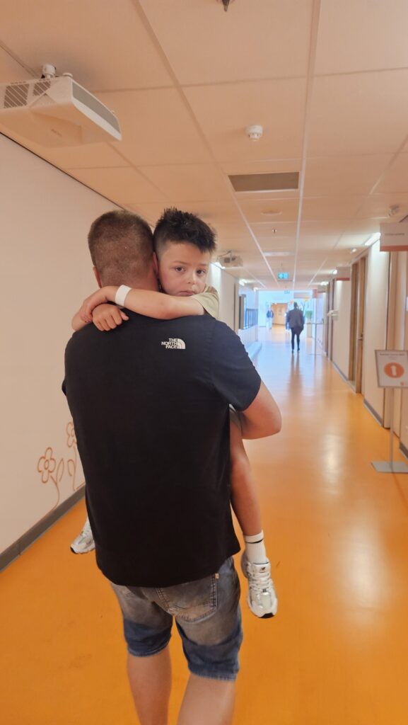 We mochten terug naar de dagbehandeling, maar Finn schreeuwde alles bij elkaar. Gelukkig kregen we na 3 minuten een eigen kamer.